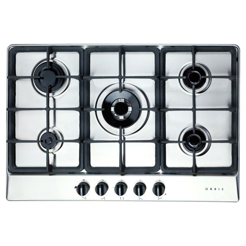 El ANAFE A GAS ORBIS 735AZO esta fabricada en acero inoxidable, dispode de 5 quemadores profesionales de doble corona y posaollas de fundición de máxima durabilidad.