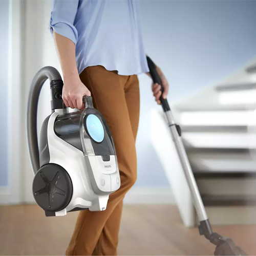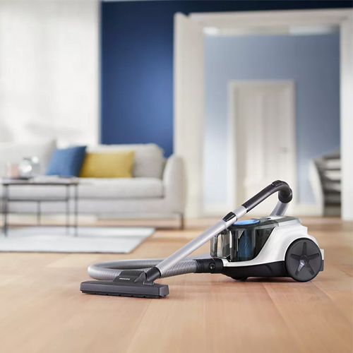 Su diseño compacto y liviano facilita el almacenamiento y el transporte de la aspiradora.