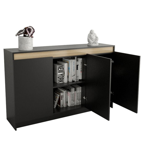 Práctico y estético, el Bahiut Table's 3 Puertas 1156 Negro/Olmo es una excelente opción para quienes buscan funcionalidad y diseño en un solo mueble. Ideal para living, comedor o espacios de transición.