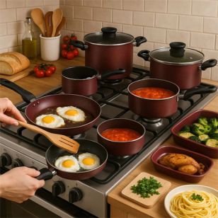Pensada para el uso diario, la Batería de Cocina Tramontina 10 Piezas Turquia 27899/426 es ideal para equipar cocinas nuevas o renovar las existentes. Gracias a su calidad de fábrica y al revestimiento antiadherente, ofrece durabilidad y practicidad en todas tus comidas. Una solución completa para cocinar con comodidad y confianza.