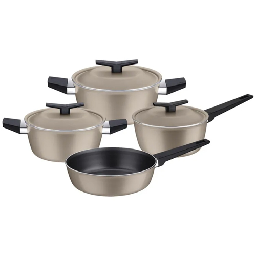 La Batería de Cocina Tramontina 4 Piezas Spezia Inducción 28399/341 está fabricada en aluminio con revestimiento interno y externo antiadherente Starflon Reforzado, que evita que los alimentos se peguen y facilita la limpieza, asegurando mayor durabilidad en el uso diario.