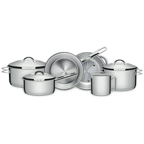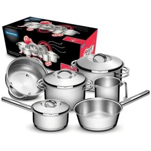 La Batería de Cocina Tramontina 6 Piezas Solar 65510/200 es un clásico de la marca, fabricada totalmente en acero inoxidable con fondo triple que garantiza alimentos más saludables al no liberar residuos y una cocción uniforme en cada preparación.