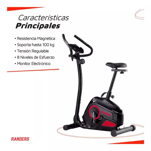 La BICI FIJA VERTICAL RANDERS ARG-456 tiene un monitor integrado que muestra información relevante como velocidad, distancia, pulso, tiempo, calorías y odómetro, lo que permite un seguimiento detallado del entrenamiento. Además, ofrece 8 niveles de esfuerzo, lo que permite ajustar la intensidad del ejercicio según las necesidades y objetivos de cada usuario.