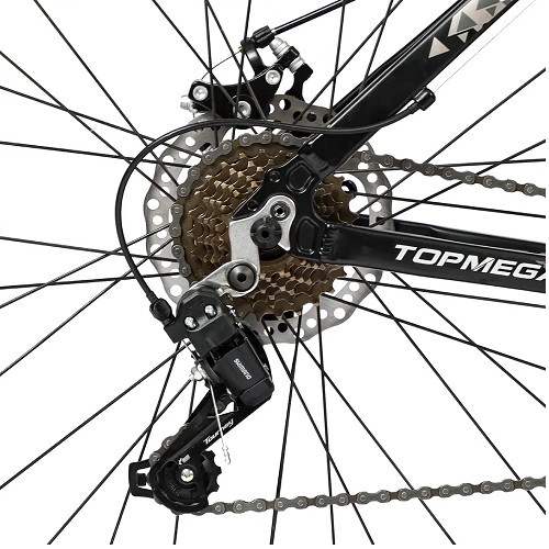 Las mazas de 36 agujeros y la horquilla con suspensión TOPMEGA aseguran una conducción estable y suave, mientras que las llantas de doble pared 32A con cierre rápido te brindan durabilidad y eficiencia. Las manijas de cambio Shimano Rapidfire EF41 integradas con visor facilitan cambios rápidos y precisos en cualquier situación.