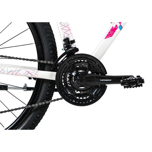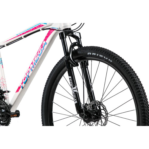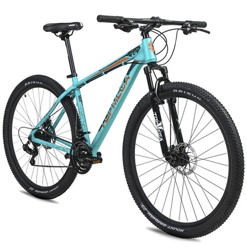 La Bicicleta TopMega R29 Sunshine posee un cuadro de aluminio, cambios Shimano Tourney TY300, sistema de freno a disco mecánico 160mm, horquilla Topmega acero con suspension Equipada con ruedas de 29 pulgadas, esta bicicleta ofrece una gran ventaja en cuanto a la superación de obstáculos, mejorando la estabilidad y el control en terrenos difíciles, como caminos irregulares, senderos y montañas.