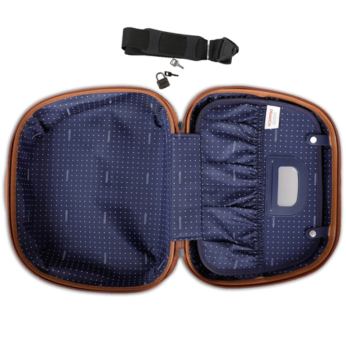 Diseñado con una carcasa rígida de policarbonato resistente al agua, el Bolso Primicia Windsor Beauty Case ofrece durabilidad y estilo. Está equipado con cierres reforzados, una correa ajustable para mayor comodidad y una tira posterior que permite engancharlo a la valija de la misma colección. Además, incorpora un candado para mayor seguridad.