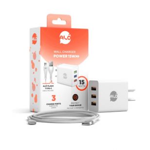 El CARGADOR ALO 15W 8020 posee 3 puertos con 15W de potencia donde permite cargar múltiples dispositivos de manera rápida y segura, protegiendo tus equipos de sobrecargas y cortocircuitos. Además, incluye un cable Aló Flash Type C para mayor comodidad.