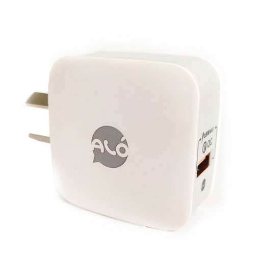 El Cargardor de pared ALO turbo cable spring Micro incluye cable USB18w, Protección termica por Microchip, VOLTAJE ENTRADA: 100-240 VCA, 50/60 Hz 0,3AClase. SALIDA: 5V / 2.4. 1 Puerto USB y Patas Oblicuas.