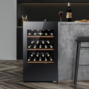 Con detalles pensados para los verdaderos amantes del vino, la Cava 30 Botellas Hisense 93L C/Compresor RW12D4NWG0 ofrece un rango de temperatura ajustable entre 5°C y 20°C, permitiendo conservar tanto blancos como tintos a su punto justo. Su ventilador interno mejora la circulación del aire, mientras que los estantes de madera regulables permiten una organización versátil y estética de tu colección.