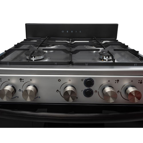 La COCINA ORBIS 858AP4 posee luz de horno frontal, iluminando los alimentos desde el frente se obtiene una mejor visualización del estado de cocción sin necesidad de abrir la puerta del horno y que se pierda parte del calor. Cuenta con válvula de seguridad por termocupla en todas las hornallas