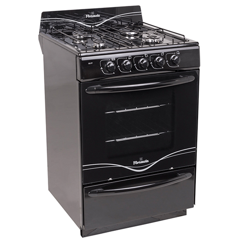 La Cocina Singer Florencia 5517F es una cocina de diseño clásico en color negro que cuenta con 4 hornallas que dispone de 1 quemador grande, 2 medianos y 1 chicos, todos con válvulas de seguridad que cortan el suministro de gas. Incorpora, a su vez, rejillas anti vuelco enlozadas.
