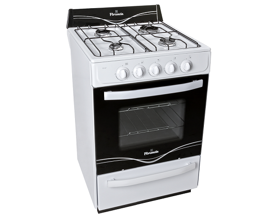La Cocina Singer Florencia 5516F incluye válvulas de seguridad y cajón parrilla deslizable con puerta volcable que permite seleccionar la altura para cada tipo de cocción.