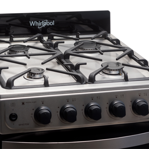 La Cocina Whirlpool WFX57DI posee rejillas de hierro fundido, timer y quemadores herméticos.