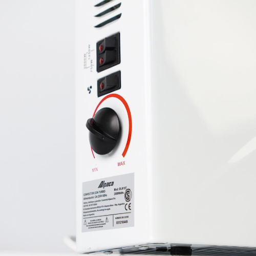 El Convector con Turbo Alpaca 2000W DL-01 se destaca por su carcasa metálica resistente y patas y manijas plásticas aislantes, que aseguran seguridad y facilidad de traslado. Además, cuenta con termostato regulable, interruptor de encendido con luz indicadora y protección contra sobrecalentamiento, garantizando un uso confiable y seguro en todo momento.