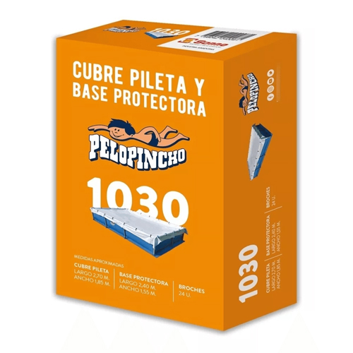 El Cubrepileta y Base Protectora Pelopincho CB030 Para Modelo 1030 tiene un largo de 2,70 m por un ancho de 1,85 m, y se asegura mediante 14 broches incluidos. Su cobertura resistente evita el ingreso de hojas, insectos y suciedad, reduciendo el mantenimiento diario.