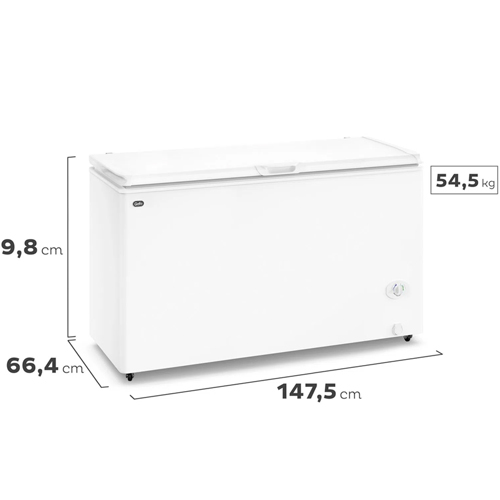 Las medidas del Freezer Gafa Inverter 402L FGHI400B-XL son de: 147,5 cm de ancho; 89,8 cm de alto y 66,4 cm de profundidad.