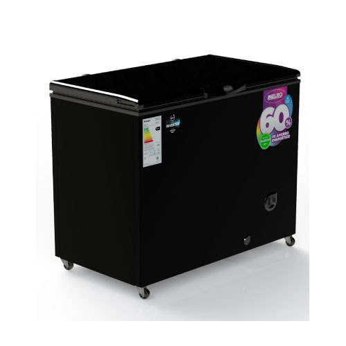 El FREEZER INELRO 280L BLACK FIH 350 A++N utiliza gas refrigerante ecológico R600a, libre de CFC, contribuyendo al cuidado del medio ambiente. Tiene una clasificación energética de clase A++, lo que garantiza un bajo consumo eléctrico. Incluye canasto plástico para una mejor organización interna y está montado sobre ruedas de alta resistencia, facilitando su movilidad.
