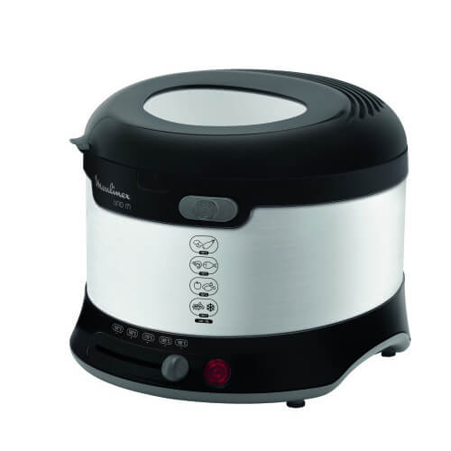 Además la FREIDORA MOULINEX UNO INOX cuenta con un filtro metálico permanente anti olores y una ventana superior para ver los alimentos mientras se fríen.