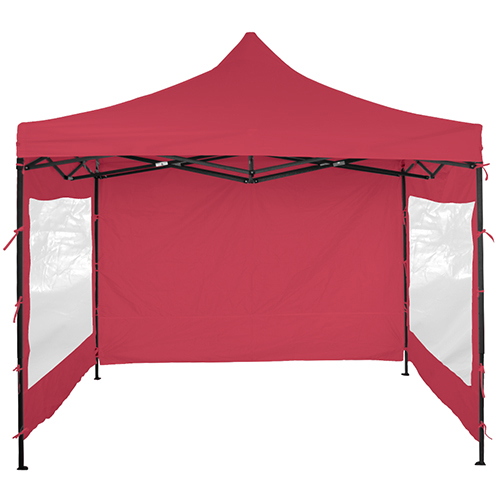 El set del Gazebo Laury 3x3 Plegable C/Paredes 16895 incluye una pared lisa y otra con ventana de PVC de 2,95 x 1,30 m, ambas confeccionadas en poliéster Oxford 210D. También incorpora 8 estacas metálicas, cuerdas de sujeción y un bolso de transporte exclusivo para el gazebo.