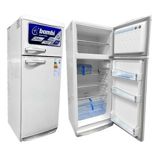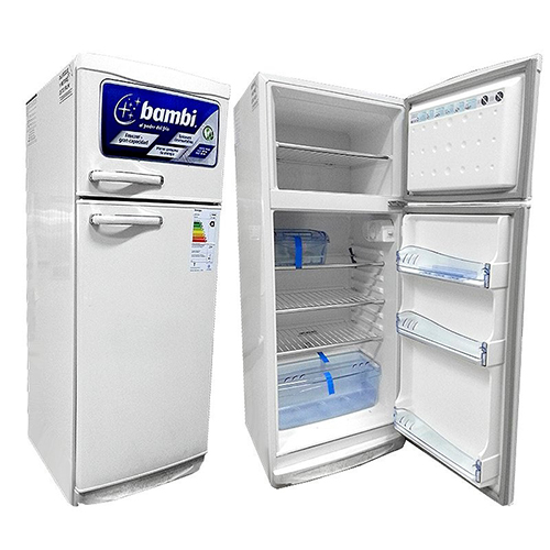 La HELADERA BAMBI 2F-1200 cuenta con descongelamiento automatico, luz interior, estantes de acero de alta resistencia, deposito individual multiuso para alimentos frescos y porta botellas en contrapuerta.