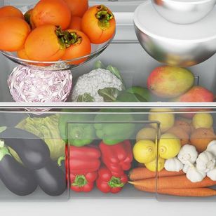 La Heladera Eslabón de Lujo ERD29BB está diseñada para tener una experiencia confortable y útil. En su interior cuenta con estantes regulables y cajón para frutas y verduras. Además, viene con balcones para botellas en la contrapuerta.
