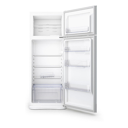 La Heladera Cíclica con Freezer Arriba presenta las siguientes características: Crisper de frutas y verduras de acrílico cristal de alta resistencia, estantes de rejilla removibles, volumen bruto de 334L, volumen útil refrigerador de 254L, volumen útil del freezer de 76L, temperatura del freezer de -18º, eficiencia energética A y clase climática T.