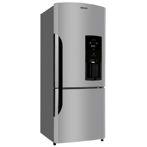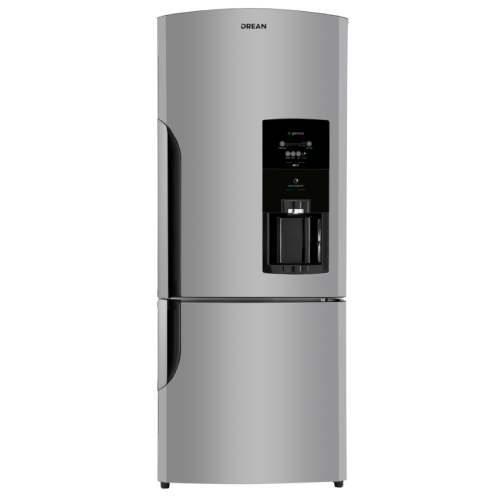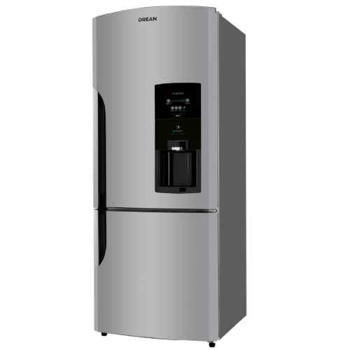 Equipada con tecnología No Frost, la Heladera No Frost Drean 520L RZB520IJARX0 evita la formación de escarcha y mantiene una temperatura uniforme. Su dispenser de agua de 1,7 litros, junto con la Smart Fill Ice Factory, permiten disfrutar de agua fresca y hielo sin abrir la puerta. Además, su gas refrigerante R600a asegura un rendimiento eficiente y ecológico.