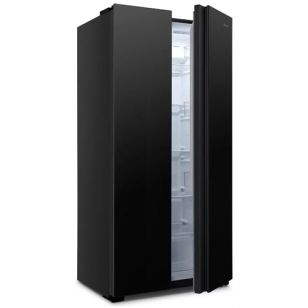 La Heladera No Frost Hisense Side By Side 468L RS3N428NAB ofrece espacio y organización en un diseño moderno y sofisticado. Con sus 468 litros de capacidad total y estantes de vidrio templado, podés mantener todos tus alimentos y bebidas perfectamente ordenados y a la vista.