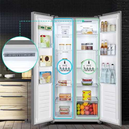 Gracias a su sistema No Frost, la Heladera No Frost Hisense Side By Side 468L RS3N428NAB elimina la necesidad de descongelar manualmente, mientras que el flujo de aire múltiple asegura una distribución pareja de la temperatura, conservando los productos frescos por más tiempo.