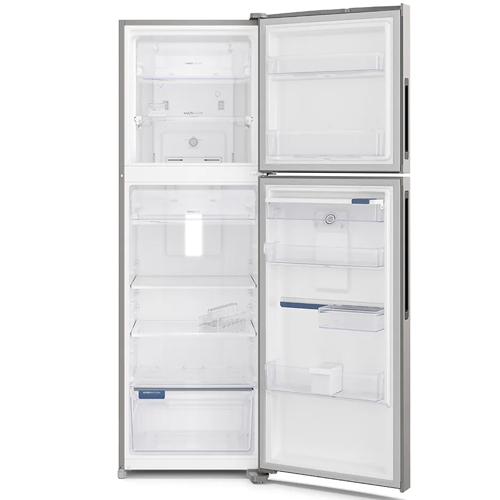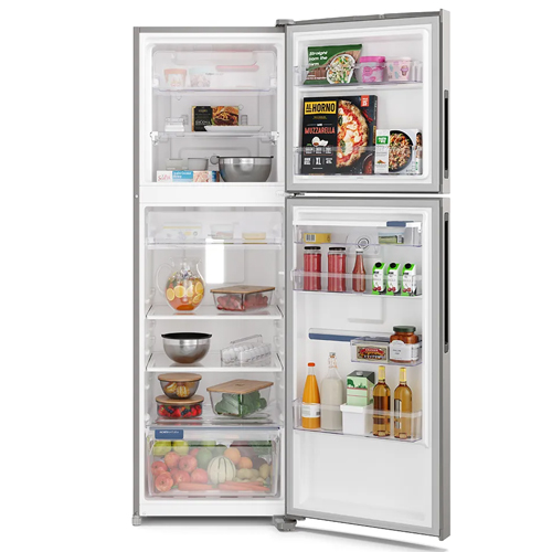 La Heladera No Frost Inverter Electrolux 424L IW46S incorpora tecnología AutoSense con inteligencia artificial, que ajusta automáticamente la temperatura para conservar los alimentos hasta un 30% más tiempo. Su diseño Top Freezer en color plata combina eficiencia y estilo.
