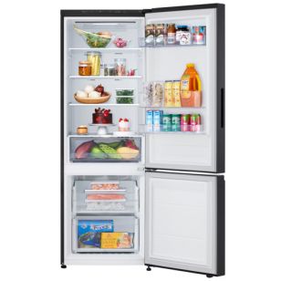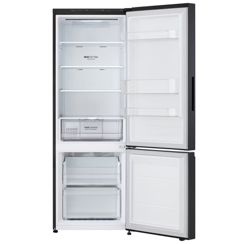 La Heladera No Frost Inverter LG 335L VB33BPM combina elegancia y funcionalidad con su diseño en color negro y formato bottom freezer, que optimiza la organización interna. Su Moist Balance Crisper controla la humedad en el cajón de frutas y verduras, manteniendo los alimentos frescos por más tiempo.