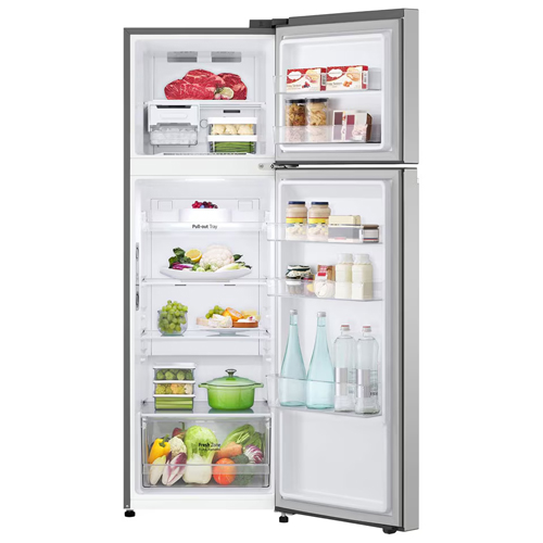 La Heladera No Frost Inverter LG 335L VT34BPY ofrece una capacidad neta de 335 litros, ideal para conservar alimentos y bebidas con comodidad. Su formato con freezer superior y eficiencia energética clase B garantiza un equilibrio entre espacio, funcionalidad y consumo responsable.