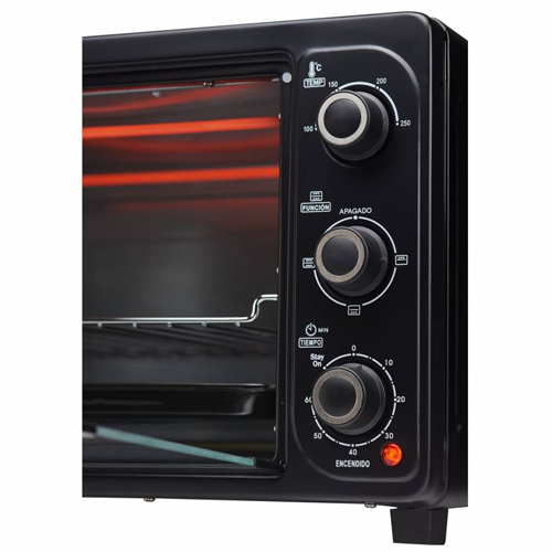 El HORNO ELÉCTRICO BGH BHE30M19N es muy fácil de utilizar con cualquier receta gracias a sus 3 niveles de cocción. Además, dispone de un termostato regulador para establecer la temperatura deseada hasta los 250 grados y una potencia de 1500 watts. Por otro lado, con el HORNO ELÉCTRICO BGH BHE30M19N vas a poder cocinar y olvidarte del reloj, gracias a su timer que permite establecer la cantidad de tiempo de cocción deseado.