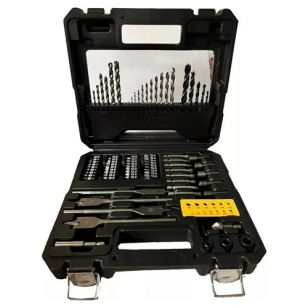 El Juego de Accesorios para Taladro Lusqtoff JATL82-8 cuenta con 11 mechas para metal (1.5 a 6.5 mm), 6 para mampostería (4 a 10 mm) y 5 para madera (4 a 10 mm). También incluye 4 mechas pala para madera (13 a 22 mm), 5 tubos (6 a 10 mm), 8 puntas planas (3 a 6 mm), 8 puntas Phillips (PH0 a PH3), 8 puntas pozidrive (PZ0 a PZ3), 8 puntas Torx (T10 a T30) y 8 puntas hexagonales (2.5 a 6 mm).