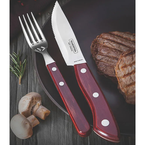Los mangos de madera tratada Polywood, combinados con remaches de acero inoxidable, no solo aportan un aspecto tradicional y robusto, sino que también ofrecen mayor resistencia a impactos y altas temperaturas. El Juego de Cubiertos Asado Tramontina 4 Piezas 29899/510 es la elección ideal para quienes buscan productos confiables, duraderos y estéticamente atractivos para sus asados.