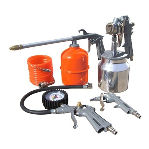 El KIT DE ACCESORIOS PARA COMPRESOR DOWEN PAGIO pistola para pintar de alta presión con recipiente de 750 ml, pistola para sopletear y pistola para lavar con recipiente de 1000 ml.