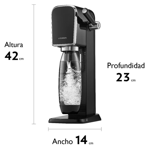 Compacta, moderna y compatible con todas las botellas Sodastream, la Máquina de Soda Sodastream Art Black es la opción ideal para quienes quieren disfrutar de bebidas burbujeantes en casa, con estilo y sin complicaciones.