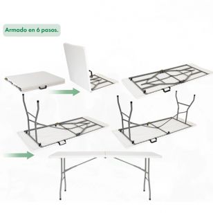 Fabricada con tapa de polipropileno blanco (HDPE), la Mesa Camping Plegable Garden Life 1,50m T404000 es resistente a los rayos UV, fácil de limpiar y amigable con el medio ambiente. Su estructura con patas de acero asegura estabilidad y durabilidad, incluso en superficies irregulares.