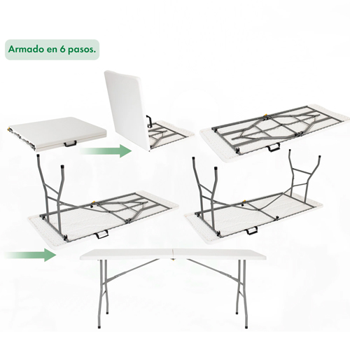 La Mesa Camping Plegable Garden Life 1,50m T404000 es una solución práctica y versátil para quienes buscan funcionalidad tanto en interiores como en exteriores. Su largo de 150 cm ofrece un amplio espacio para compartir comidas, juegos o reuniones, siendo ideal para hogares, patios, campings o eventos.