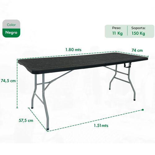 - Mesa Camping Plegable Garden Life Simil Madera 1,80m T408501 Negra