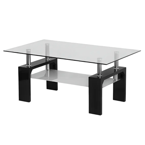 La Mesa Ratona Decototale RA-002 Ana combina tapa de vidrio con patas de madera, logrando un diseño moderno y resistente que se adapta a distintos estilos de decoración.