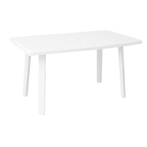 La MESA RECTANGULAR LAURY BALNCA 14469 cuenta con las siguientes dimensiones: 134 x 79 cm, con una altura de 72 cm, proporcionando un tamaño adecuado tanto para interiores como exteriores. Su diseño funcional incluye un orificio en el centro para colocar una sombrilla, ideal para protegerse del sol durante el uso al aire libre.