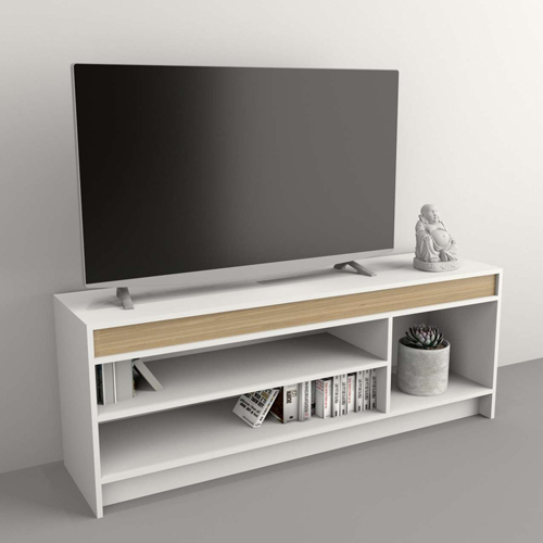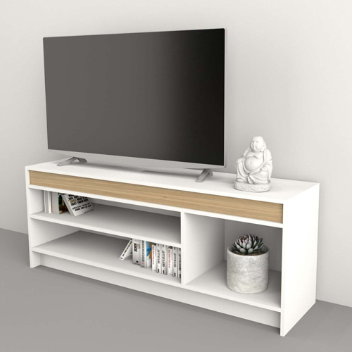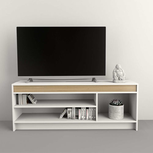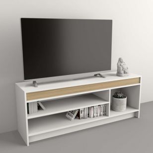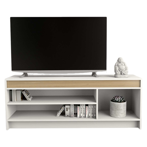 La Mesa TV Abierta Table's Everest/Olmo 1150 cuenta con un amplio estante que permite almacenar dispositivos electrónicos, libros o elementos decorativos de manera ordenada. Su sistema Minifix proporciona una estructura firme y estable, asegurando un armado sencillo y resistente.