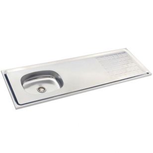 La Mesada Ricchezze está fabricada en acero inoxidable AISI 430, sin zócalo, bacha reversible y utilizable tanto izquierda o derecha.