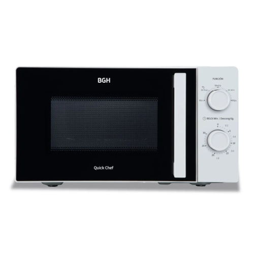 Con una potencia de salida de 700W y 5 niveles ajustables, el Microondas BGH 18L Mecánico B118MB25 asegura la cocción justa para cada tipo de comida. Su plato giratorio de vidrio de 24,5 cm garantiza una distribución uniforme del calor, mientras que la función de descongelado rápido facilita la preparación diaria.