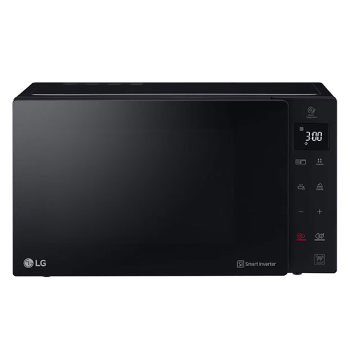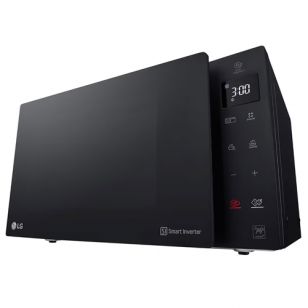 El diseño del Microondas LG 25L Digital C/Grill Inverter MH6535GIS destaca por su acabado en color negro con puerta ahumada y panel táctil lateral con pantalla LED. Incluye funciones prácticas como añadir 30 segundos, bloqueo infantil y avisador de finalización, aportando comodidad y seguridad en cada preparación.