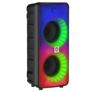 El Parlante Portatil Stromberg HEAT permite elegir entre distintos juegos de luces LED RGB para ofrecer un espectáculo sonoro y visual increíble. Cuenta con control de bajos y agudos, función karaoke con efectos de voz para que escuches de la manera que más te gusta. Tiene entrada para micrófono y micrófono incluido, control de eco y entrada auxiliar.