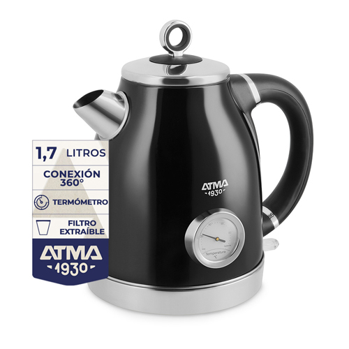 La Pava Eléctrica Atma Vintage PEAT21VBP cuenta con una capacidad de 1,7 litros y 2200 watts de potencia. Es de color negra.