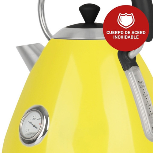 Con la increíble Pava Eléctrica Peabody PEKV8213-A de acero inoxidable y diseño vintaga., vas a poder disfrutar de tu agua caliente al instante para tu desayuno o merienda gracias a su potencia de 2000 Watts y su gran capacidad de 1,7 litros. Cuenta con indicador de temperatura especial en los 80°C, ideal para disfrutar de ricos mates; además posee función de corte automático a los 100°C cuando el agua llegua a punto de ebullición, cortando automáticamente el funcionamiento de la pava permitiendo ahorrar energía.