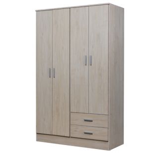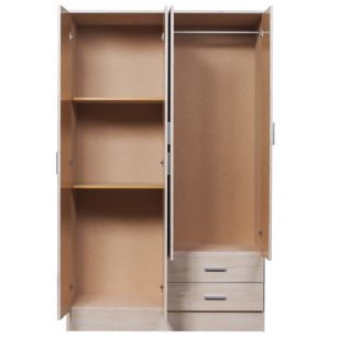Con sus 4 puertas, 2 cajones espaciosos y manijas metálicas de diseño minimalista, el Placard Ricchezze 1.13Mts Tana Eco Fresno Blanco 3-00-092-28 permite almacenar ropa y accesorios de manera práctica y ordenada. Sus bisagras de cierre automático aseguran un uso cómodo y duradero en el día a día.